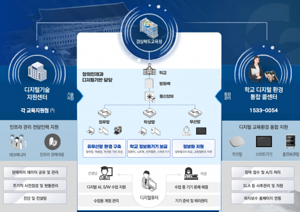 경북교육청은 AI 디지털교과서 도입에 대비해 학교 유·무선 네트워크 점검과 스마트기기 관리를 강화하고 있으며 2025년부터는 교육지원청의 테크센터 테크센터: 학교의 디지털 기기, 네트워크 등의 인프라 관리와 장애에 대응하는 통합지원센터를 중심으로 학교 현장을 밀착 지원할 방침이다.