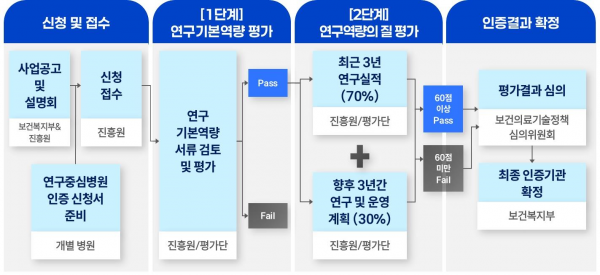보건복지부는 1단계 기본역량 평가와 2단계 연구역량 질 평가로 나누어 약 3개월간 평가 기준 부합 여부를 면밀히 검토했다.