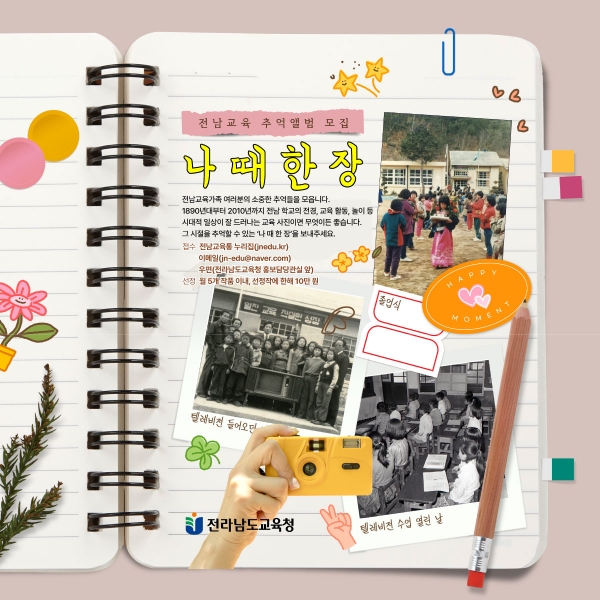 [한국Q뉴스] 전라남도교육청이 전남 지역 학교와 교육활동을 담은 추억 앨범 ‘나 때 한 장’ 사진 공모전을 진행한다.