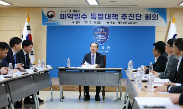 [한국Q뉴스] 관세청은 3월 31일 제주세관에서 이명구 관세청 차장 주재로 ’ 25년 제3차 ‘마약밀수 특별대책 추진단’ 회의를 진행했다.