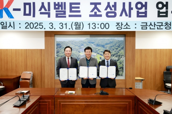충남문화관광재단과 금산군, 한식진흥원은 지난 31일 금산군청에서 ‘K-미식벨트 금산인삼 콘텐츠 개발’을 위한 업무협약을 체결했다.