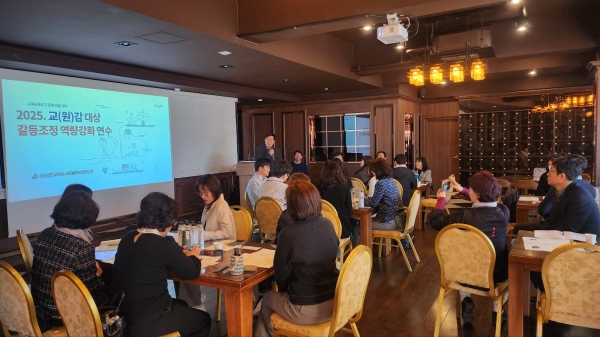 이번 연수는 교육활동보호담당관 주관으로 진행되며 최근 학교 내 다양한 갈등 상황을 효과적으로 조정하고 해결할 수 있도록 돕기 위해 마련됐다.