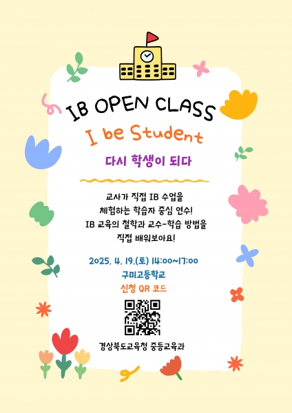 또, 오는 19일 구미고등학교에서 ‘IB OPEN CLASS – I be Student: 다시 학생이 되다’ 연수가 개최된다.