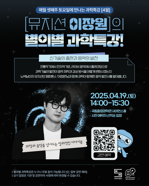 [한국Q뉴스] 매월 셋째 주 토요일에 만나는 별의별 과학특강, 올해 4번째 강연이 또 다른 특별한 주제를 가지고 2025년 4월 19일 토요일 오후 2시, 국립중앙과학관 사이언스홀에서 펼쳐질 예정이다.