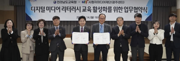 [한국Q뉴스] 전라남도교육청과 시청자미디어재단 광주센터는 14일 전라남도교육청에서 ‘디지털 미디어 리터러시 교육 활성화’를 위한 업무협약을 체결했다.