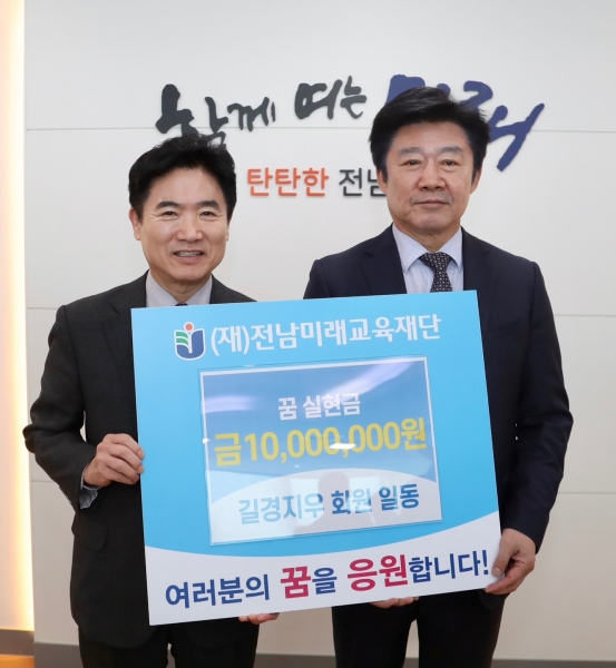 [한국Q뉴스] 길경지우는 14일 전남미래교육재단에 ‘꿈 실현금’ 1,000만원을 기탁했다.