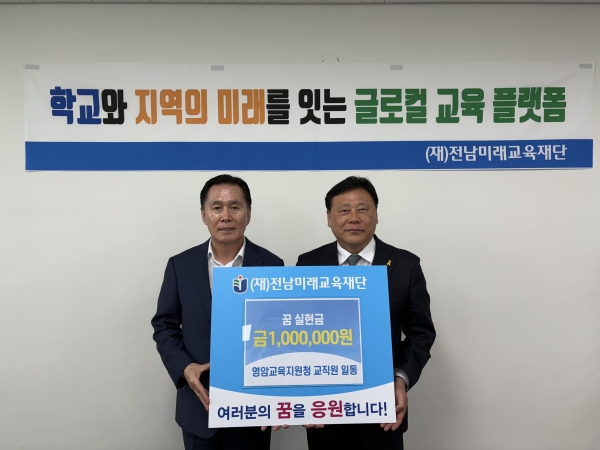 [한국Q뉴스] 전라남도 영암교육지원청은 16일 전남미래교육재단에 100만원의 꿈 실현금을 기탁했다.
