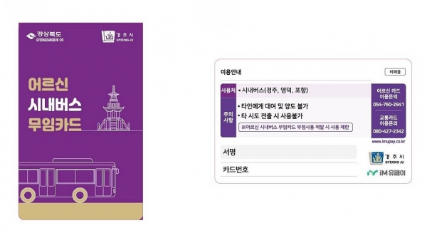 주낙영 경주시장은 “이번 시내버스 무료 이용 제도가 교통 접근성 향상은 물론 어르신들의 일상 이동 편의에 큰 도움이 될 것으로 기대한다”며 “발급과 이용 과정에서 불편함이 없도록 지속적인 점검과 지원을 아끼지 않겠다”고 말했다.