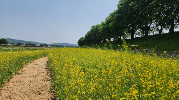 유채꽃들은 평탄한 지형에 아름답게 펼쳐져 있고 산책로가 정비돼 있어 꽃밭 사이를 나비들과 함께 거닐 수 있을 뿐만 아니라 나무 그늘이 우거진 벚꽃길에서도 유채꽃을 만끽할 수 있어 산책 코스로도 적합해 자연과 함께 산책을 즐기려는 이들의 발걸음이 이어지고 있다.