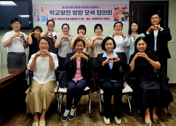 [한국Q뉴스] 경기도의회 정윤경 부의장은 8월 8일 금정중학교 교장실에서 교직원 및 학부모들과 함께 ‘학교 발전 방향 모색 협의회’에 참석해 학급 수 감소와 교내 시설 개선 등 주요 현안을 논의했다.