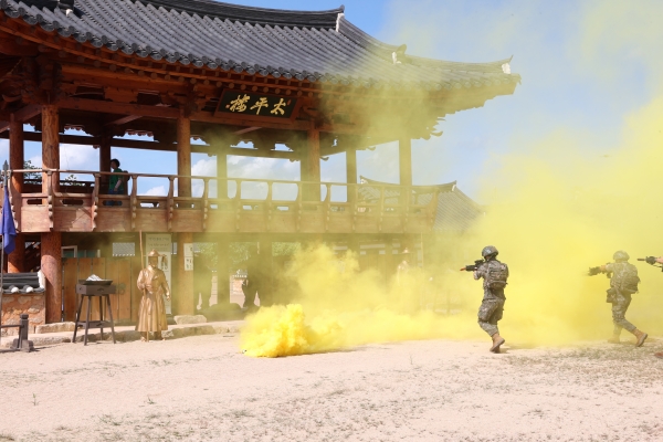 [한국Q뉴스] 상주시는 2025년 을지연습 2일차 8월 19일 오후 3시에 태평성대 경상감영공원에서 을지연습 실제훈련을 실시했다.