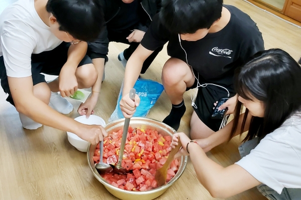 프로그램은 어르신들이 일상 속에서 즐거움을 느낄 수 있도록 매니큐어 바르기, 종이접기, 수박화채 만들기, 마스크팩 체험 등 다채로운 활동으로 구성됐다.