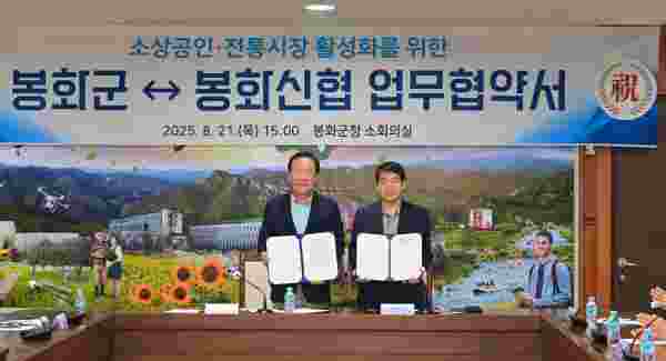 [한국Q뉴스] 봉화군과 봉화신용협동조합은 지난 21일 봉화군청 소회의실에서 소상공인 및 전통시장 활성화를 위한 업무협약을 체결했다.