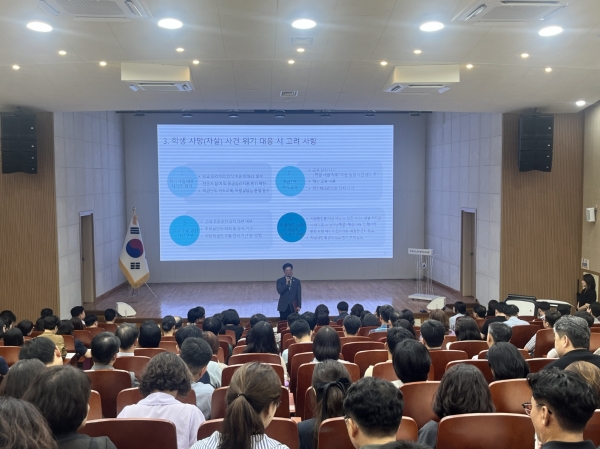 이번 연수는 학교 위기 상황 발생 시 초기 대응과 심리적 안정화 지원 역량을 강화하고 위기 학생의 연계 및 지원 체계에 대한 이해를 높이기 위해 마련됐다.