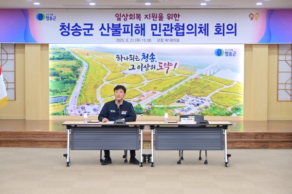 [한국Q뉴스] 청송군은 지난 21일 군청 제1회의실에서 산불 피해 군민들의 다양한 의견을 청취하고 합리적인 지원방안을 마련하기 위해 ‘청송군 산불피해 민관협의체’ 회의를 개최했다.