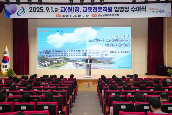 [한국Q뉴스] 충남교육청은 지난 25일 2025.9.1.자 인사 발령에 따른 교장, 교육전문직원에 대해 임명장을 25일 도교육청 대강당에서 수여했다.
