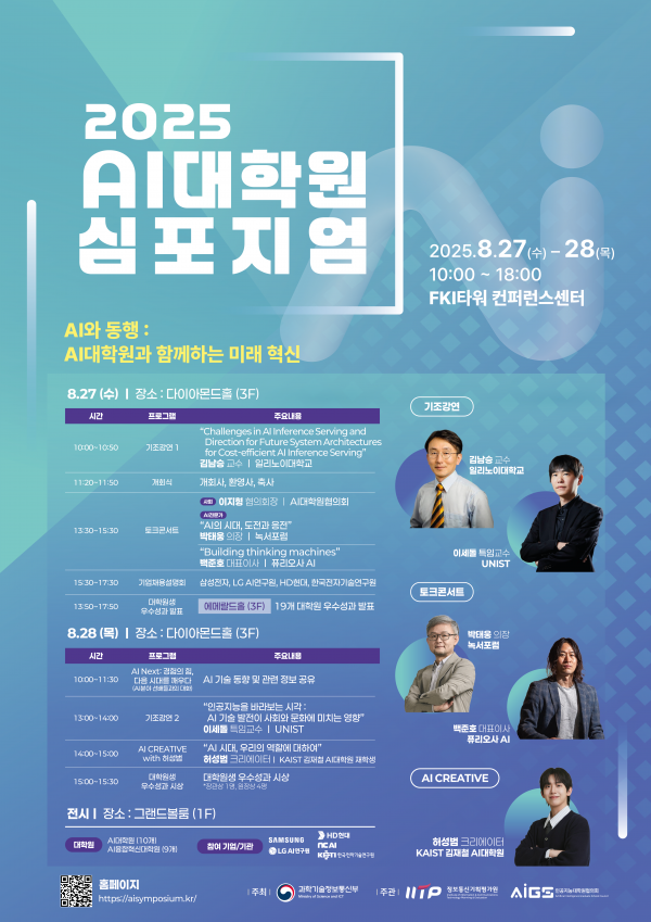 한편 오늘 간담회가 열린 2025 인공지능 대학원 학술대회는 “인공 지능과 동행 : 인공 지능 대학원과 함께하는 미래 혁신”이라는 주제로 8.27∼28 이틀간 개최된다.