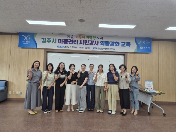 최연선 경주시 아동청소년과장은 “시민강사의 직무역량 향상을 통해 아이들이 더 안전하고 행복하게 성장할 수 있도록 지원을 아끼지 않겠다”며 “실질적인 아동권리 증진에 더욱 힘쓰겠다”고 말했다.
