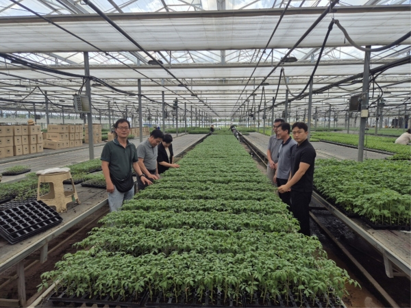 이번 육묘장 견학은 금년말 봉성면 창평리에 준공되는 봉화 임대형 스마트팜단지 B동에 식재되는 토마토 모종의 원활한 수급과 유망품종 선택을 위한 정보 수집을 위해 이뤄졌다.
