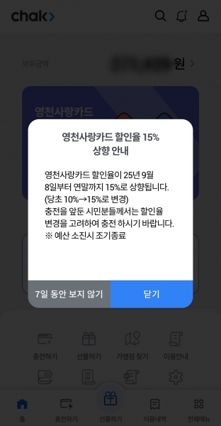 최기문 영천시장은 “이번 할인율 상향으로 시민들의 생활비 절감과 소상공인 매출 증대에 기여할 것으로 기대한다”며 “영천사랑상품권 구매를 통해 우리 지역 상권을 함께 살리는 데 적극 동참해주시길 바란다”고 전했다.