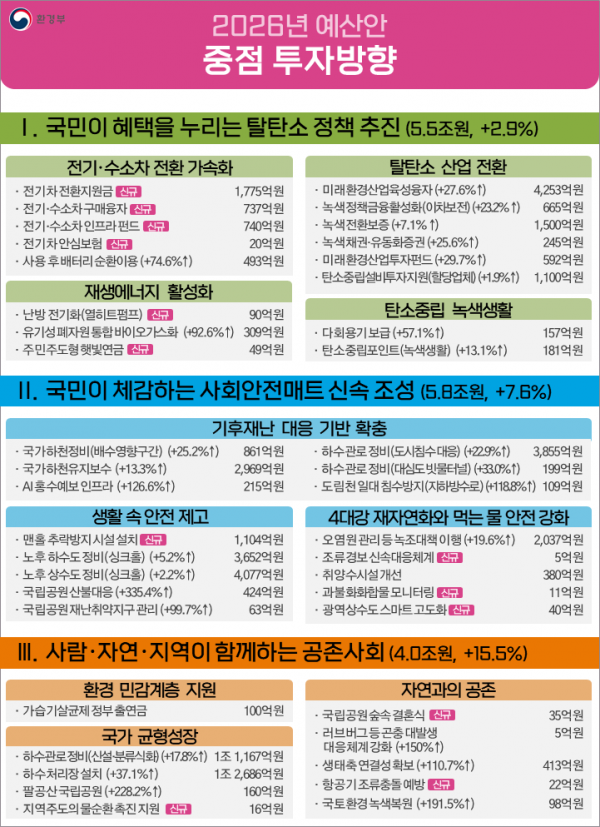 2026년도 환경부 예산 및 기금운용계획안은 9월 2일 국회에 제출 후, 국회의 심의·의결을 거쳐 올해 12월 안으로 확정될 예정이다.