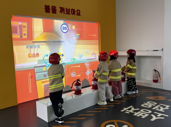 오후 프로그램은 안전교육관으로 이동해 가정, 유치원, 우리 동네 등 우리 주변에서 일어날 수 있는 화재나 교통사고 지진 등 다양한 위험 상황 속에서 스스로를 안전하게 지키는 방법을 체험을 통해 배우게 된다.