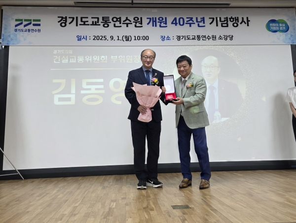 김동영 부위원장은 “앞으로도 경기도교통연수원이 1,420만 경기도민의 올바르고 안전한 교통 문화를 만들어가는 데 앞장설 수 있도록 경기도의회에서 적극 지원하겠다”는 수상 소감을 전했다.