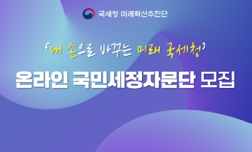 [한국Q뉴스] 국세청은 국세행정 미래 청사진을 마련하기 위해 지난 달 발족한 ‘미래혁신 추진단’과 함께, 국민의 시각에서 혁신과제를 만들어 갈 ‘온라인 국민세정자문단’을 모집한다.