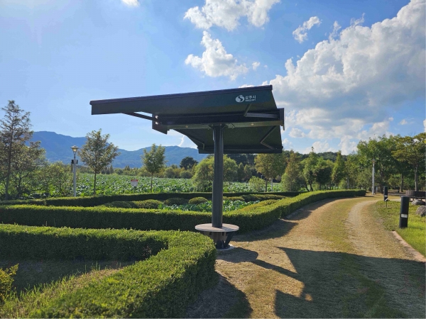 [한국Q뉴스] 상주시는 지난 8월, 남산물길쉼터와 중덕지 자연생태공원에 스마트 그늘막을 설치했다.