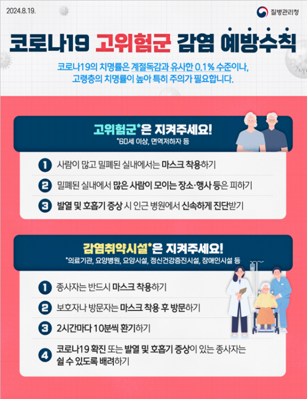 아울러 “의료기관이나 요양시설의 종사자 및 방문객은 반드시 마스크를 착용해 주시고 국민께서도 손씻기, 주기적 실내 환기 등 코로나19 예방수칙을 준수해달라”고 전했다.