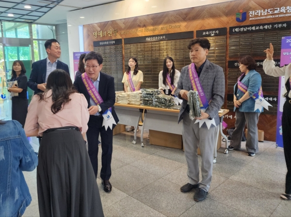 행사 기간 국장, 민주생활교육과장, 진로교육과장, 민주생활교육과 팀장 등 간부진과 직원들도 청사를 찾은 동료와 내방객을 맞으며 나눔 활동을 전개했다.