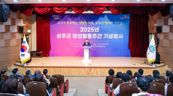 [한국Q뉴스] 성주군은 9월 9일 성주군청 대강당에서 성주군 여성지도자 등 250명이 참석한 가운데 ‘2025년 성주군 양성평등주간 기념행사’를 개최했다.
