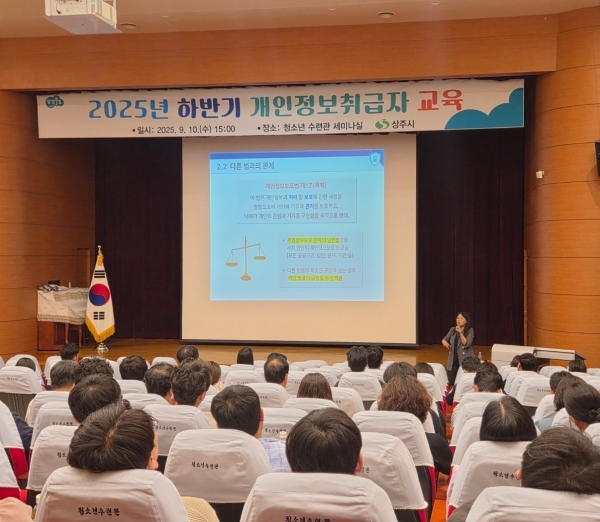 [한국Q뉴스] 상주시는 9월 10일 상주시 청소년수련관 세미나실에서 ‘2025년 하반기 개인정보취급자 교육’을 개최했다.