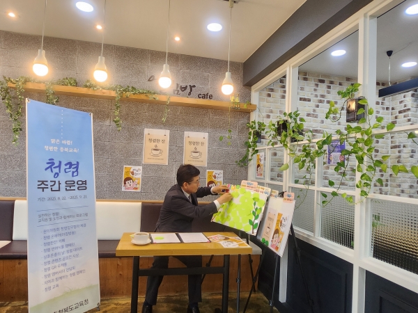 [한국Q뉴스] 충청북도교육청은 12일 행복관 어울림방에서 청렴문화 확산을 위한 이색 행사인 ‘청렴한 잔 청렴카페’를 운영했다고 전했다.
