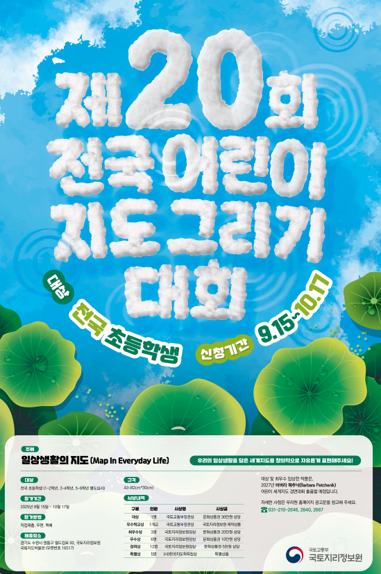 [한국Q뉴스] 국토교통부 국토지리정보원은 어린이들의 상상력과 창의성을 세계지도에 담아내는 ‘제20회 전국 어린이 지도 그리기 대회’를 개최한다.