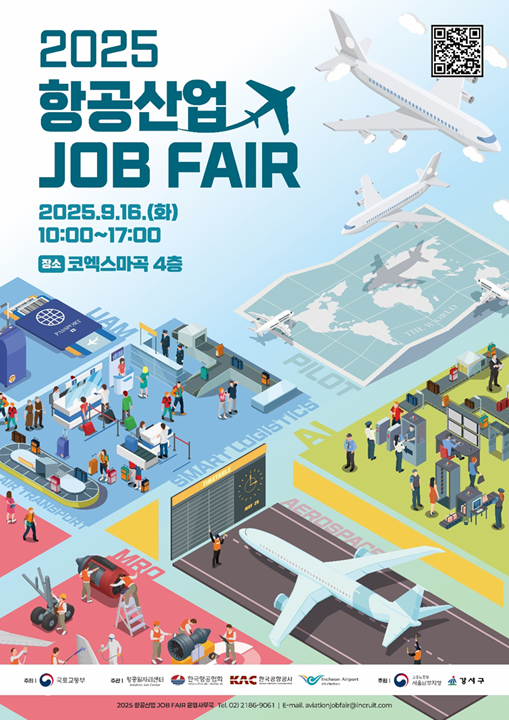 [한국Q뉴스] 국토교통부는 9월 16일 오전 10시부터 서울 코엑스 마곡 르웨스트홀에서 ‘제8회 항공산업 JOB FAIR’를 개최한다.