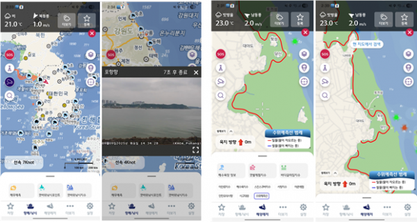 또한, 바닷물이 내 위치에 접근할 경우 경고 메시지와 함께 가까운 육지 방향과 거리 정보를 음성 안내해 야간이나 해무 등 시야가 제한된 상황에서도 안전을 확보할 수 있도록 기능을 강화했다.