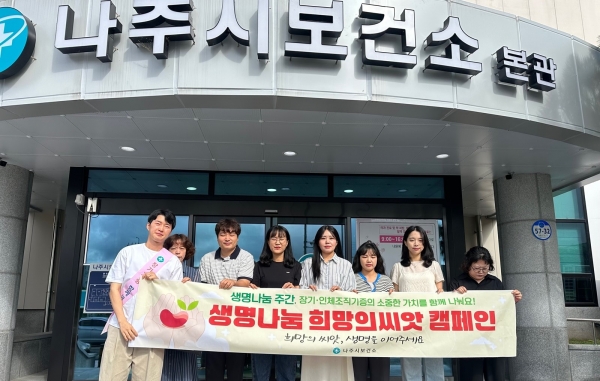 나주시 강용곤 보건소장은 “장기기증은 한 사람의 결단으로 여러 생명을 살릴 수 있는 가장 숭고한 생명나눔의 실천”이라며 “이번 생명나눔 주간을 계기로 시민들이 장기기증에 대해 관심을 두고 동참해 주시길 바란다”고 말했다.