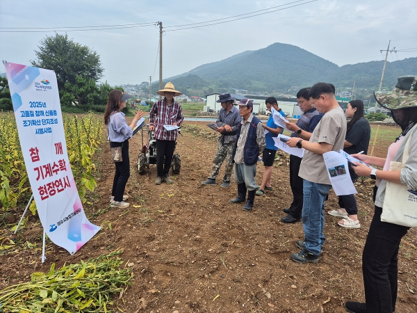 연시회에는 지역 농업인과 관계자들이 참석해 신품종 참깨의 생육 상황과 기계수확 과정을 직접 확인했다.
