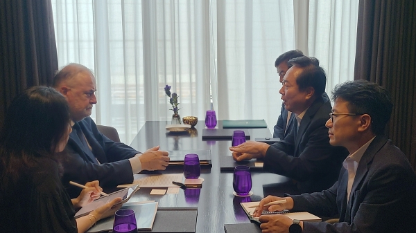 [한국Q뉴스] 권기창 안동시장은 9월 16일 서울에서 세계물위원회 루이 포숑 위원장을 만나 낙동강 상류 관리와 물 환경 보전을 위한 국제 협력 방안을 논의했다.