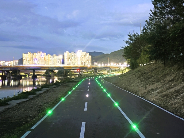 [한국Q뉴스] 장성군이 자전거 이용자 안전 확보를 위해 황룡강변 자전거도로에 ‘활주로형 엘이디 표지병’을 설치했다.