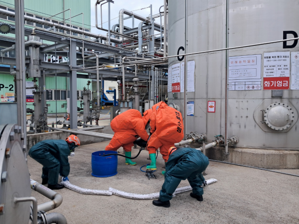 또한 오염확산방지 둑 설치와 누출차단장비 운용 등 2차 피해 방지 절차도 함께 훈련했다.
