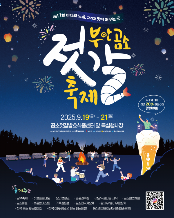 [한국Q뉴스] 전국 5대 젓갈시장으로 성장 발전하고 있는 젓갈의 산지 부안 곰소에서 제17회 부안 곰소젓갈축제가 9월 19일부터 21일까지 3일간 열린다.