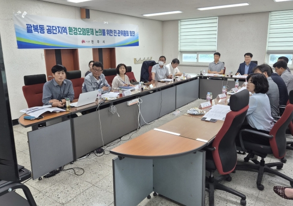 [한국Q뉴스] 전주시는 17일 팔복동 소재 CEK㈜ 전주사업부에서 만성지구에 거주하는 민간위원들과 함께 팔복동 공단지역 대기환경 개선 및 환경 오염 문제 논의를 위한 민·관위원회 회의를 개최했다.