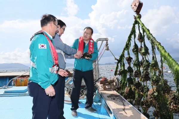 또한 해양수산부 주관 2025년 패류공동생산시설 공모사업 선정을 홍보하고 진해만 일대에서 발생한 정어리떼 동향을 살피는 등 어업인들과 직접 소통했다.