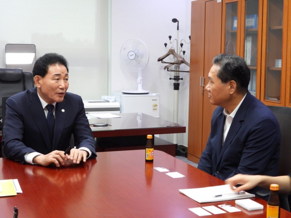 [한국Q뉴스] 국회 국토교통위원회 더불어민주당 박용갑 의원이 16일 김용석 국토교통부 대도시권광역교통위원회 위원장을 만나 대전 중구 지역 교통 현안을 논의했다.