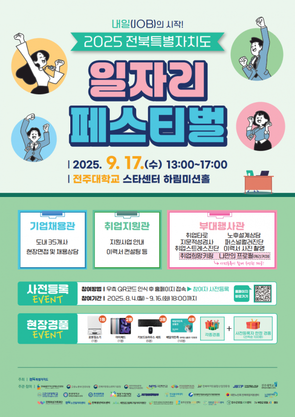 전북특별자치도는 17일 전주대학교 스타센터 하림미션홀에서 ‘2025 전북특별자치도 일자리페스티벌’을 열고 구인 기업과 도내 구직자를 직접 연결하는 소통과 채용의 장을 마련했다.