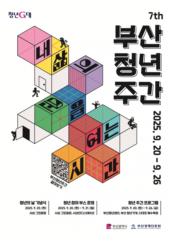 부산시는 9월 '청년의 날'을 맞아, 오는 20일부터 9월 26일까지 일주일 동안 ‘2025 부산청년주간’행사를 개최한다고 밝혔다.