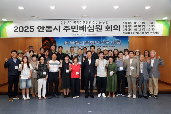 [한국Q뉴스] 안동시는 민선 8기 시정 공약을 시민 눈높이에 맞는 정책으로 발전시키기 위해 ‘2025년 안동시 주민배심원 회의’를 지난 8월 18일부터 9월 15일까지 총 3회에 걸쳐 개최하고 시민의 뜨거운 관심 속에 성공적으로 마무리했다고 밝혔다.