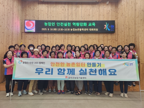 [한국Q뉴스] 합천군은 16일 여성농업인 40명이 참석한 가운데 황가람농업농촌활력센터에서 농업인 안전실천 역량강화 교육을 실시했다.